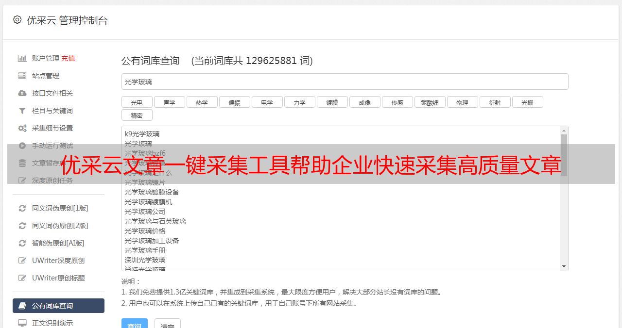 优采云文章一键采集工具帮助企业快速采集高质量文章