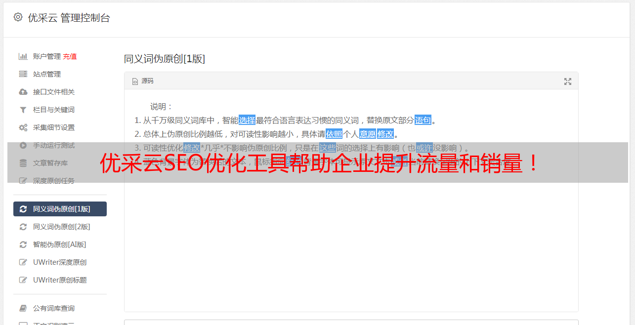 当然,要想通过“英文博客伪原创”来达到最佳效果,就必须选择一个好的工具来帮助我们。优采云SEO优化工具就是一个很好的选择。它能够有效地帮助我们创建SEO友好的内容,并支持批量处理多条文章,大大减少了我们处理文章所需要的时间。此外,优采云还可以帮助我们快速识别出文章中存在的问题(如语法、语义和样式问题),从而保证我们生成的内容能够得到Google或其他搜索引擎的肯定。