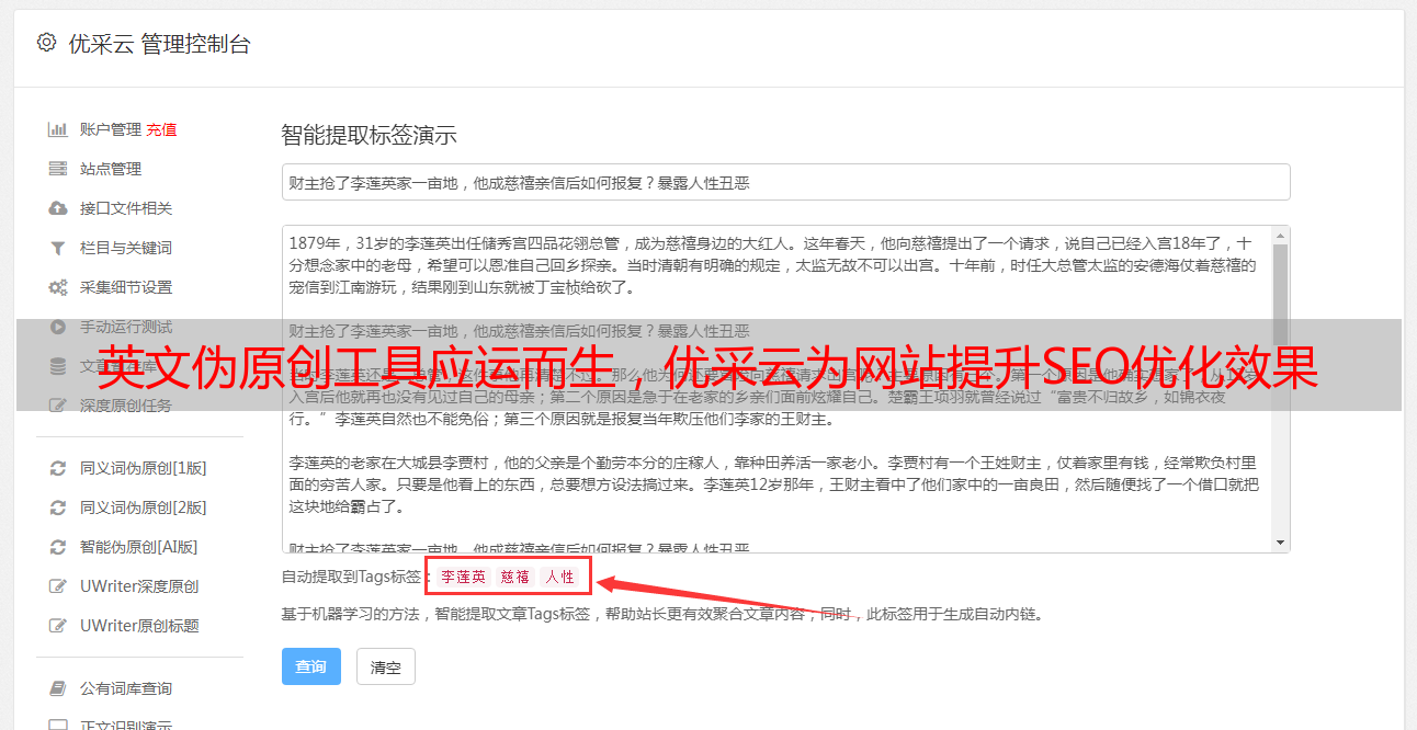 英文伪原创工具应运而生,优采云为网站提升SEO优化效果