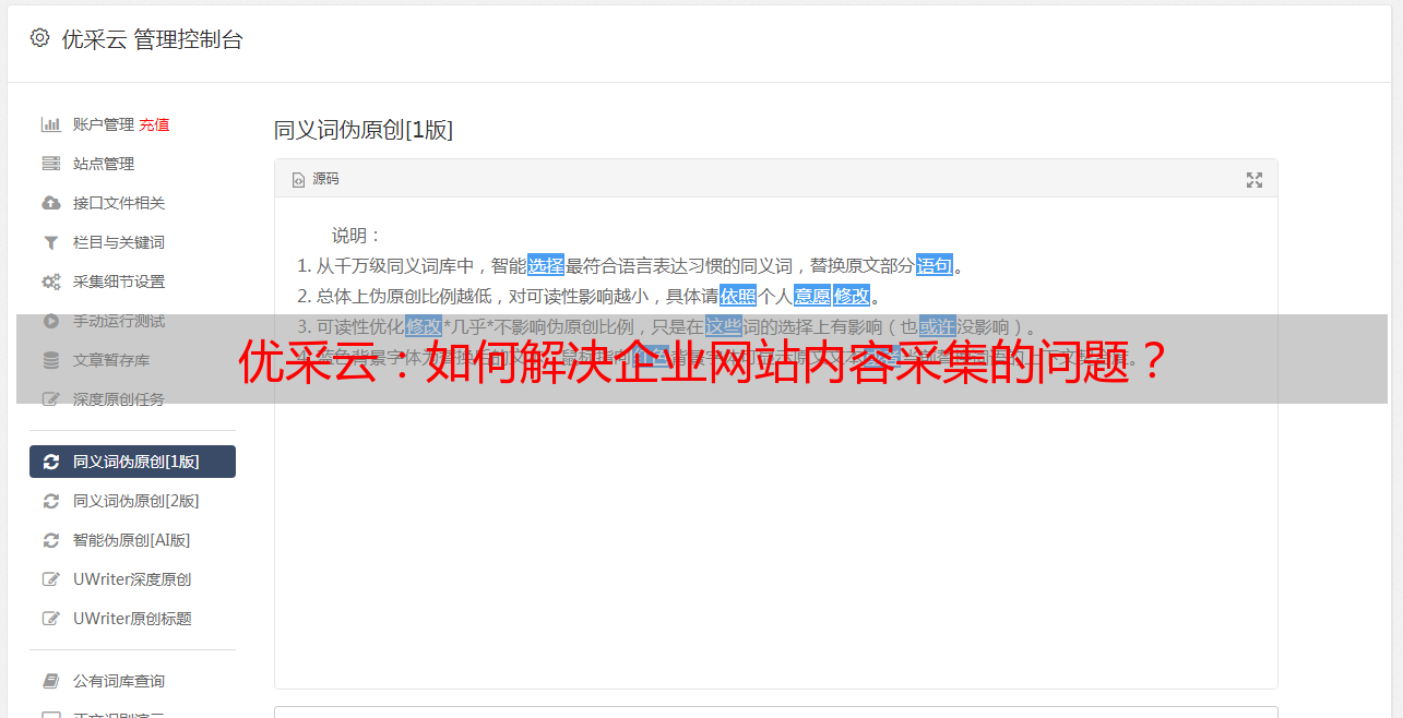 总之,使用优采云的自动采集和SEO优化服务能够有效地帮助用户快速、准确地实现内容采集和SEO优化,从而大大地提升企业形象和品牌影响力。如想了解详情,请浏览官方网站www.ucaiyun.com 。