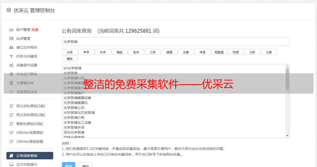 优采云 发布时间: 2023-02-10 14:31整洁的免费采集软件——优采云是一款整洁的免费采集软件,它可以帮助用户快速、轻松地实现采集,这种免费的采集器具有很高的性价比。