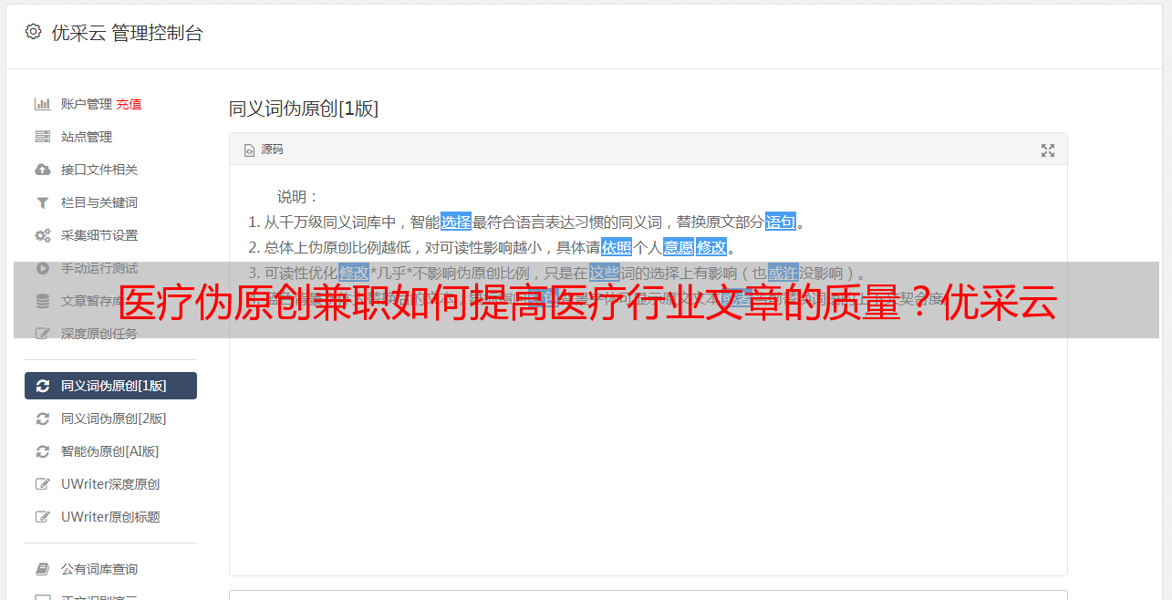 医疗伪原创*敏*感*词*如何提高医疗行业文章的质量?优采云