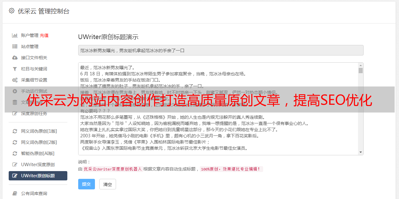 优采云为网站内容创作打造高质量原创文章,提高SEO优化