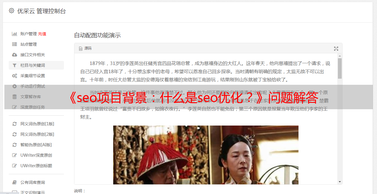 优采云 发布时间: 2021-06-09 03:48《seo项目背景:什么是seo优化?》问题解答