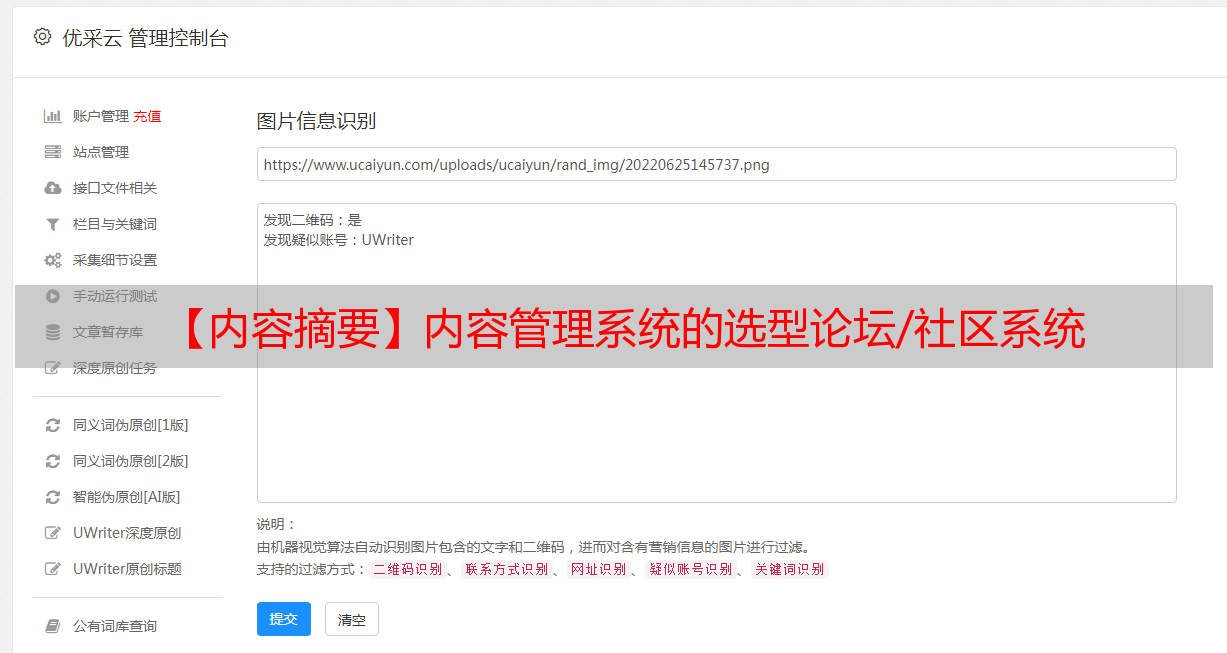 优采云 发布时间: 2021-06-09 22:43【内容摘要】内容管理系统的选型论坛/社区系统