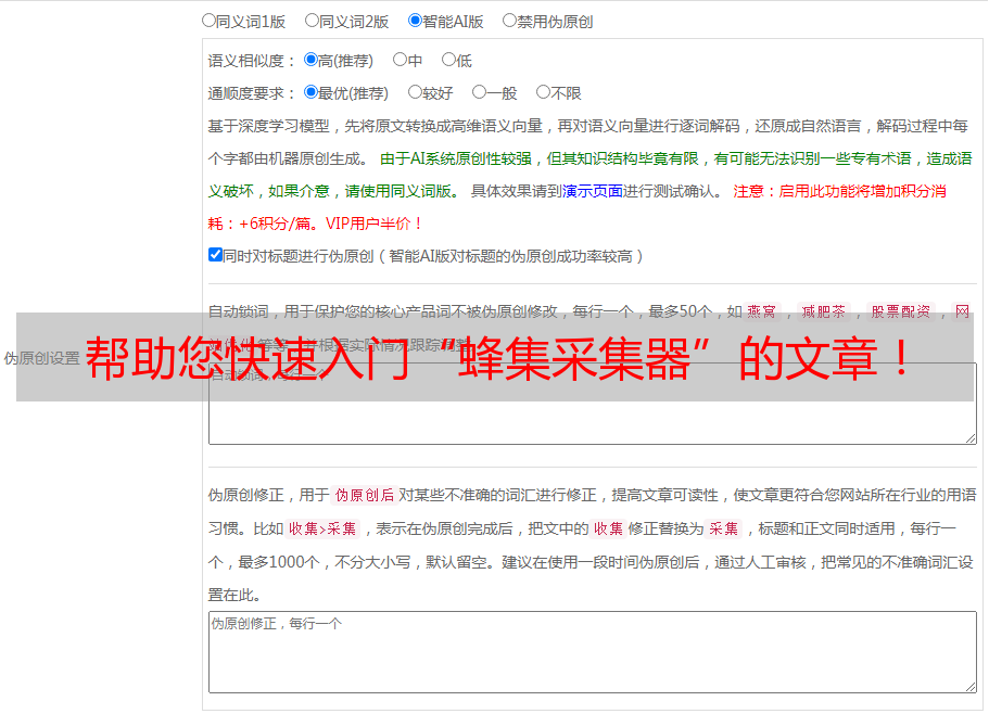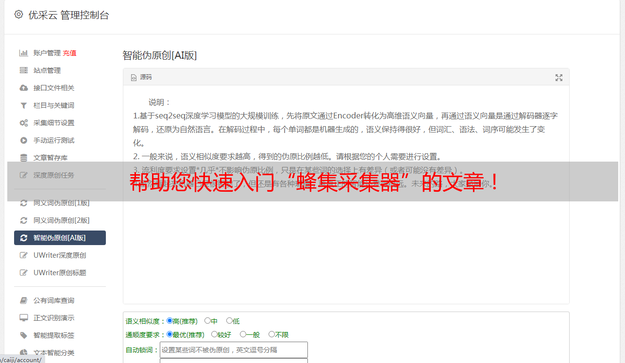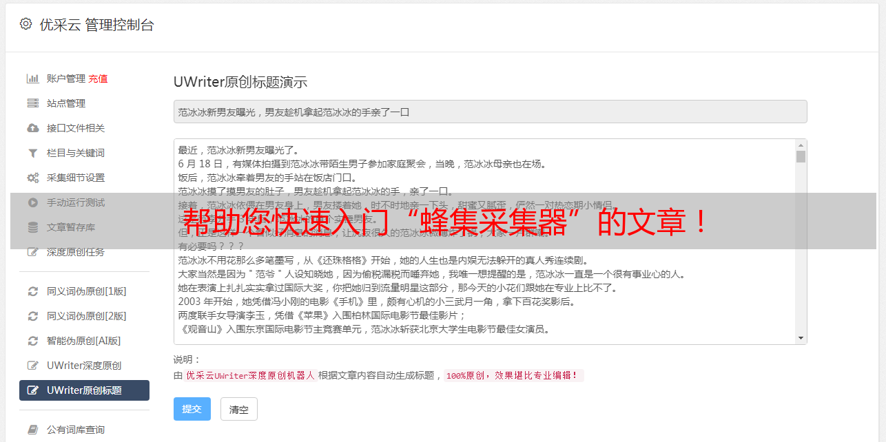 这是文章,帮助您快速上手“蜂集采集器”。如果你刚接触采集器,建议你仔细阅读这篇文章,它会很快帮助你采集器 很有帮助。