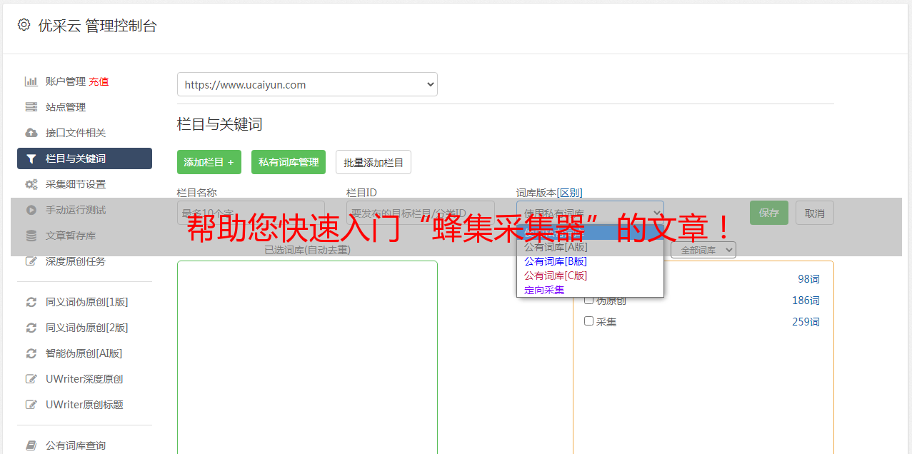 优采云 发布时间: 2021-06-10 04:56帮助您快速入门“蜂集采集器”的文章!