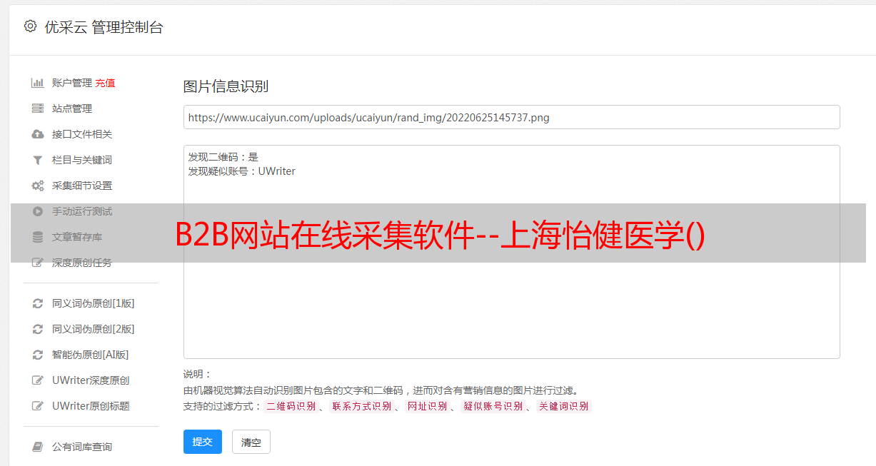 优采云 发布时间: 2021-06-11 20:03B2B网站在线采集软件--上海怡健医学()