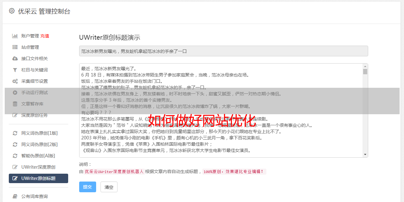 向主要搜索引擎提交网站。提交给搜索引擎 将网站提交给搜索引擎是谷歌等各大搜索引擎收录你网站必经的一步。这样做的好处是加快搜索引擎爬取收录你的网站,同时可以给你增加很多流量和反向链接。既然有这么多好处,为什么不去做呢?社交媒体奖金。尽管谷歌一直否认在排名算法中使用社交媒体数据,但来自社交媒体的数据反馈仍有可能被搜索引擎用作网站评分的参考。 Facebook、google+等分享次数。网站Map提交。 sitemap.xml 格式仍然是主流,谷歌也是。做好地图提交也是提升收录的关键。从大的角度来看,怎么做百度seo,就做谷歌seo,应用这个方法(细节不一样)。