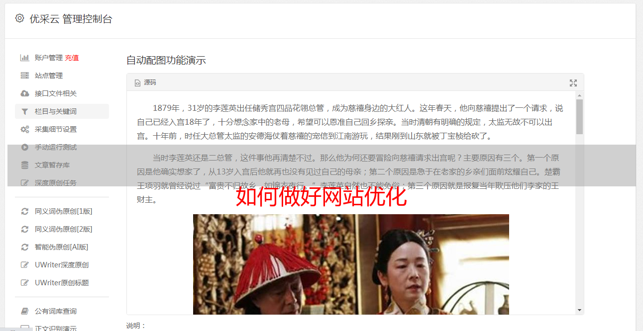 Guangzhou网站optimization网站architecture 分析,网站architecture 分析包括:消除网站architecture 不良设计,树状目录结构的实现,网站navigation 和链接优化。匹配搜索引擎爬虫偏好的Guangzhou网站optimization网站结构有利于SEO优化。 关键词Analysis,这是SEO优化的重要部分。 关键词analysis 包括:关键词attention 分析、竞争对手分析、关键词与网站related 分析、关键词Layout、关键词Rank 预测。内容发布和链接布局搜索引擎如定期网站内容更新,广州网站优化链接布局将整个网站有机连接起来,让搜索引擎了解每个页面和关键词的重要性。 网站目录和页面优化,SEO不仅仅是让网站home页面在搜索引擎中排名靠前,更重要的是让网站的每一页都带来流量。创建网站MapSiteMap,并根据自己的网站结构创建网站map。