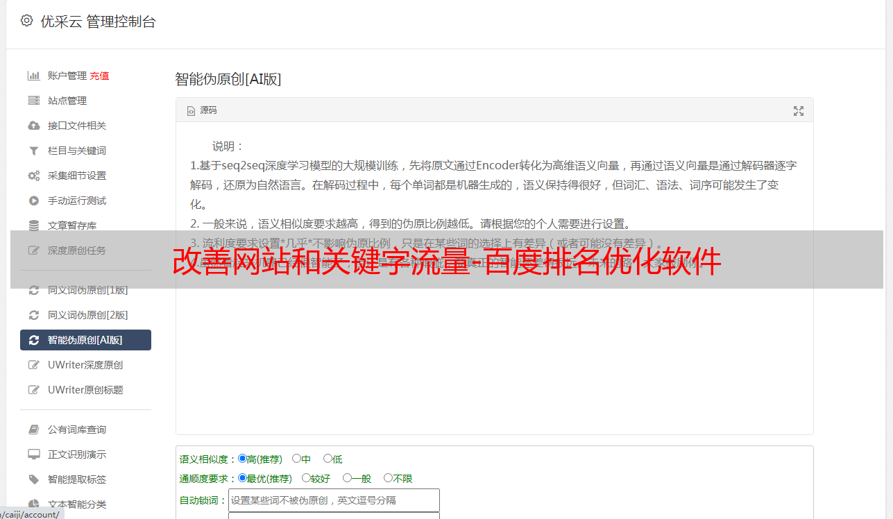 优采云 发布时间: 2020-08-08 03:30超级排名系统,快速的网站关键词排名优化,7-15天的首页关键词排名,可以优化PC和移动终端,支持百度,搜狗,360,神马等主流搜索引擎.