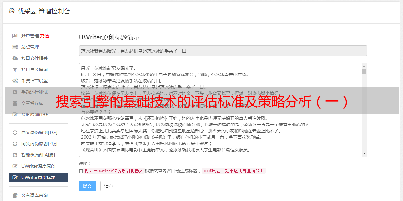 优采云 发布时间: 2021-06-19 01:26搜索引擎的基础技术的评估标准及策略分析(一)