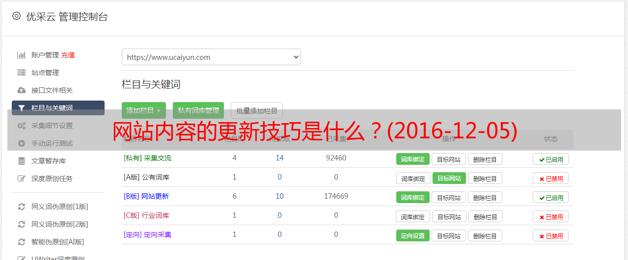 优采云 发布时间: 2021-06-19 05:09网站内容的更新技巧是什么?(2016-12-05)