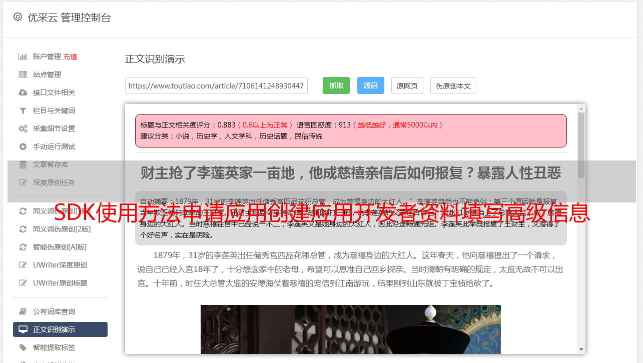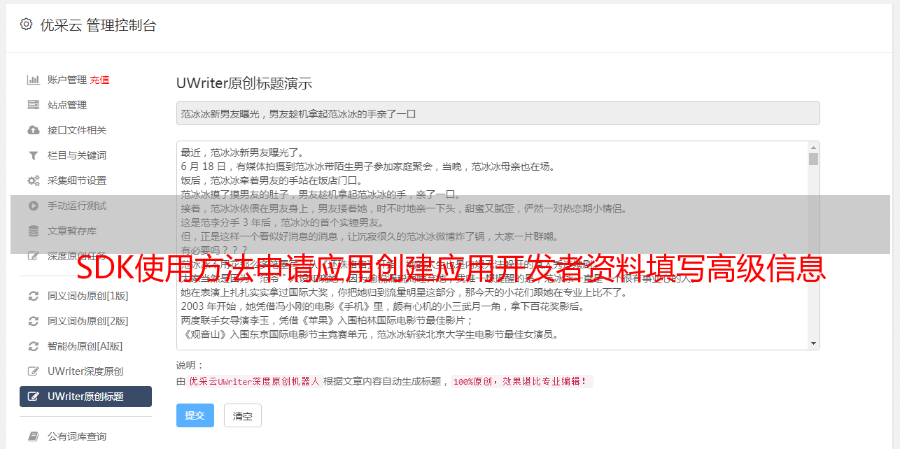 SDK使用方法申请应用创建应用开发者资料填写高级信息