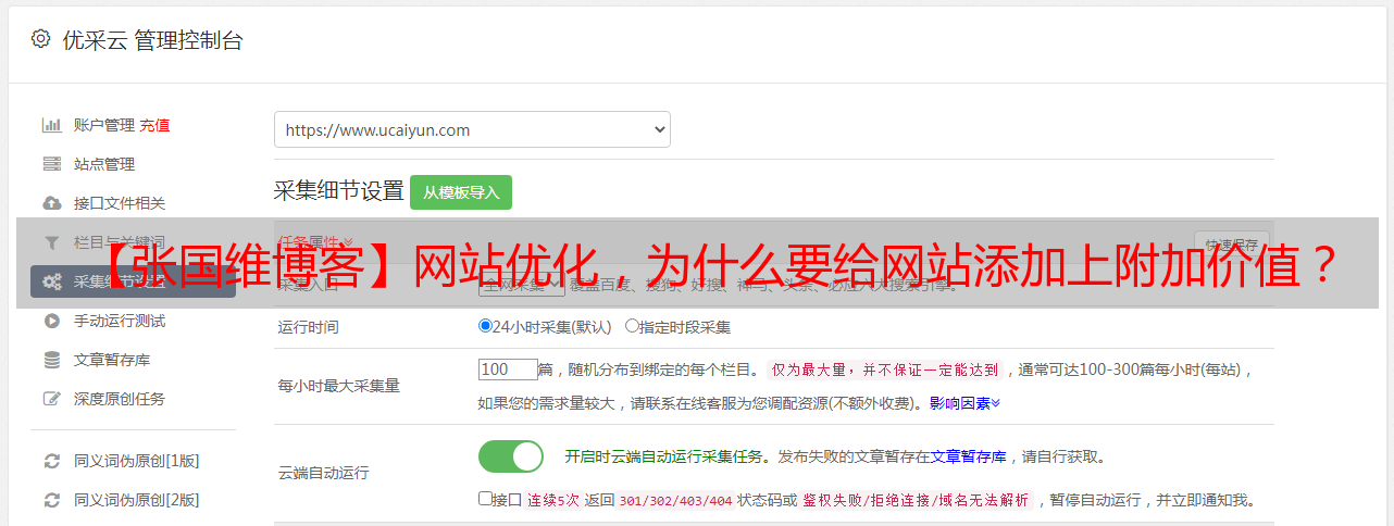 优采云 发布时间: 2021-06-22 19:15【张国维博客】网站优化,为什么要给网站添加上附加价值?