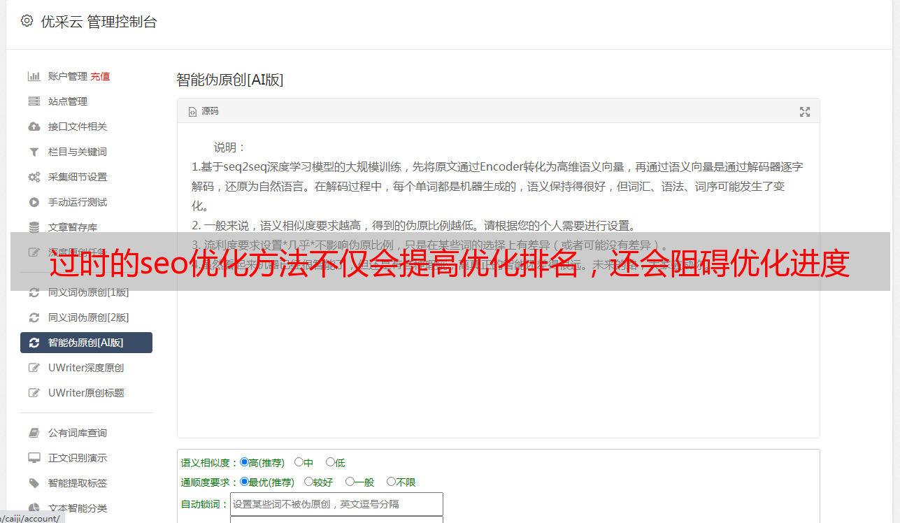 获取内容(程序生成的内容)可以扩展目标关键字并通过使用关键字(同义词和同义词)生成内容. 当搜索引擎采集器(以下称为采集器)发现关键字重复出现时,页面排名第一. 但是不是现在. 搜索引擎可以识别这些内容,并且搜索引擎将越来越多地攻击这些行为.