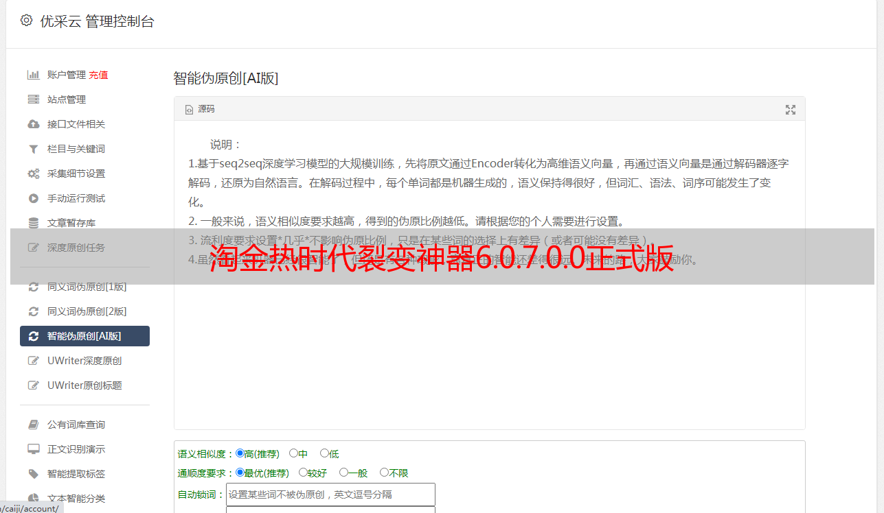 优采云 发布时间: 2020-08-08 16:09淘金热时代裂变神器是可以帮助用户分析关键字的软件. 如果需要提高自己产品的排名,则可以在软件中采集热门标题并将其拆分为单词,以便可以与其他产品进行比较将标题添加到产品标题中,这非常适合需要优化关键字. 该软件是为电子商务开发的. 它可以在电子商务平台上采集产品标题. 采集完成后,您可以在软件中设置裂变计划. 淘金时代裂变神器提供的直接裂变上传功能,可以上传到您的产品,如果需要裂变标题,请下载!