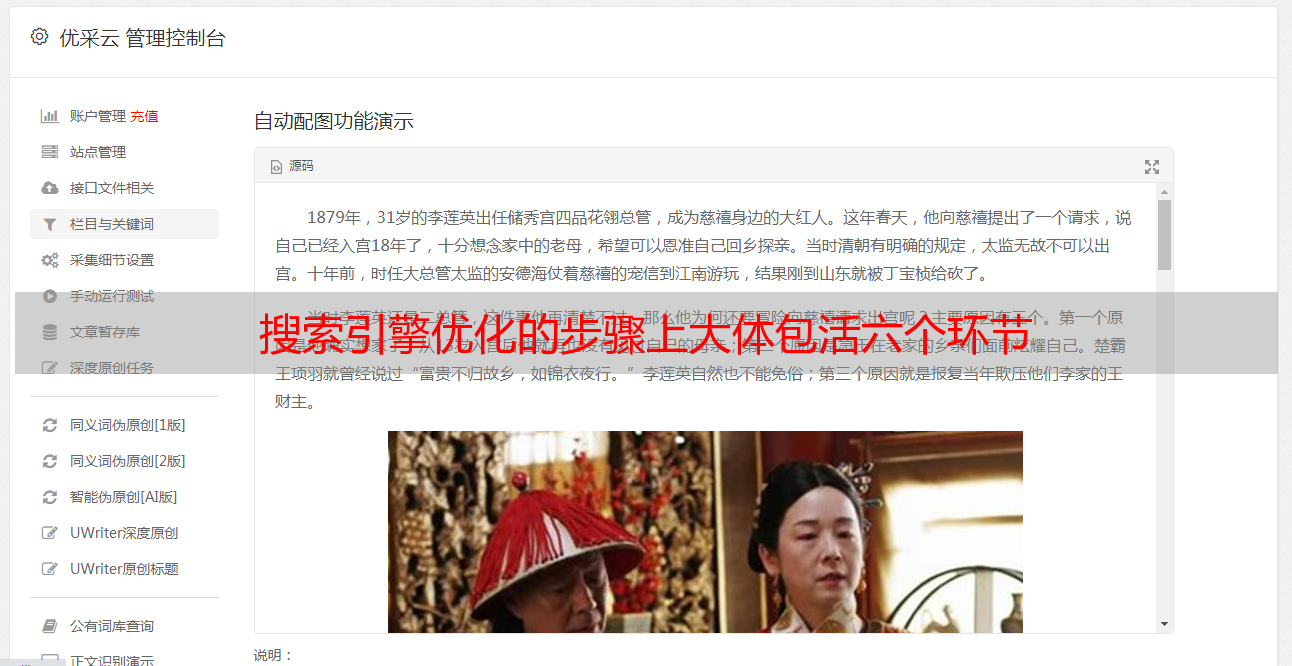 优采云 发布时间: 2021-06-25 01:10搜索引擎优化的步骤上大体包活六个环节
