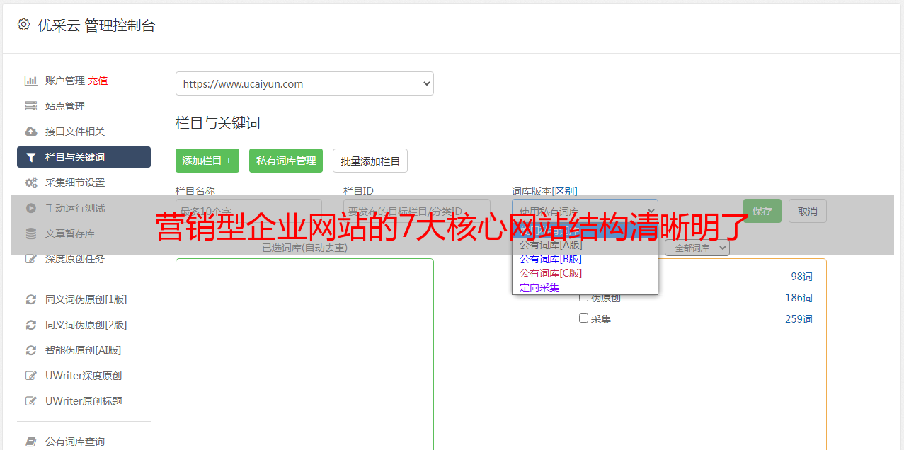 优采云 发布时间: 2021-06-25 05:17营销型企业网站的7大核心网站结构清晰明了