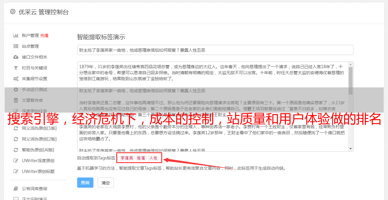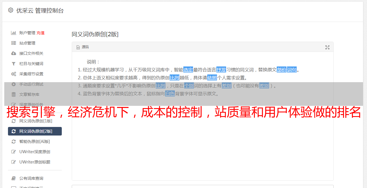 搜索引擎,经济危机下,成本的控制,站质量和用户体验做的排名