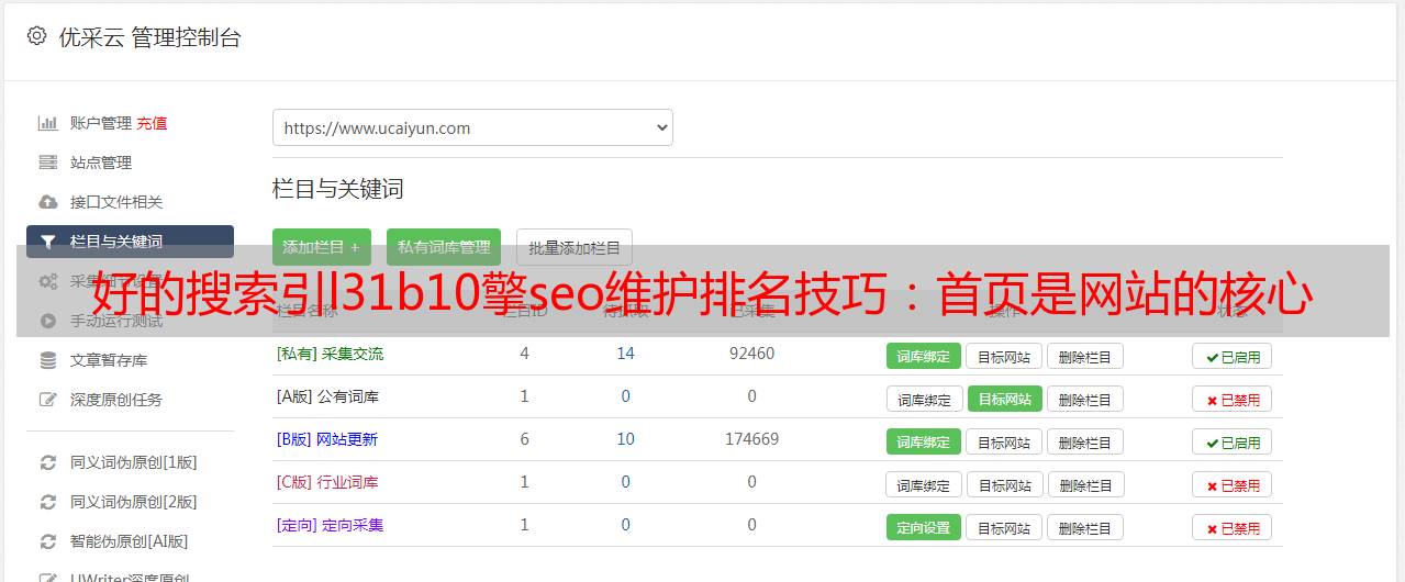 优采云 发布时间: 2021-06-26 01:19好的搜索引l31b10擎seo维护排名技巧:首页是网站的核心