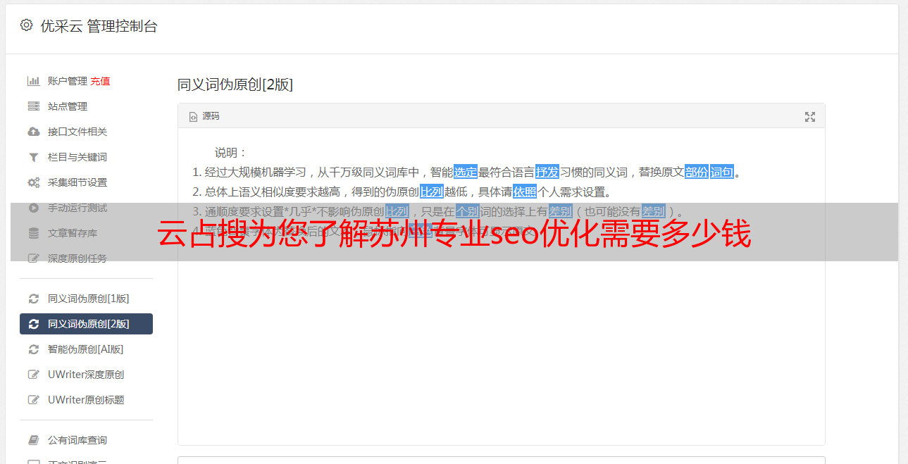 优采云 发布时间: 2021-06-26 04:44云占搜为您了解苏州专业seo优化需要多少钱