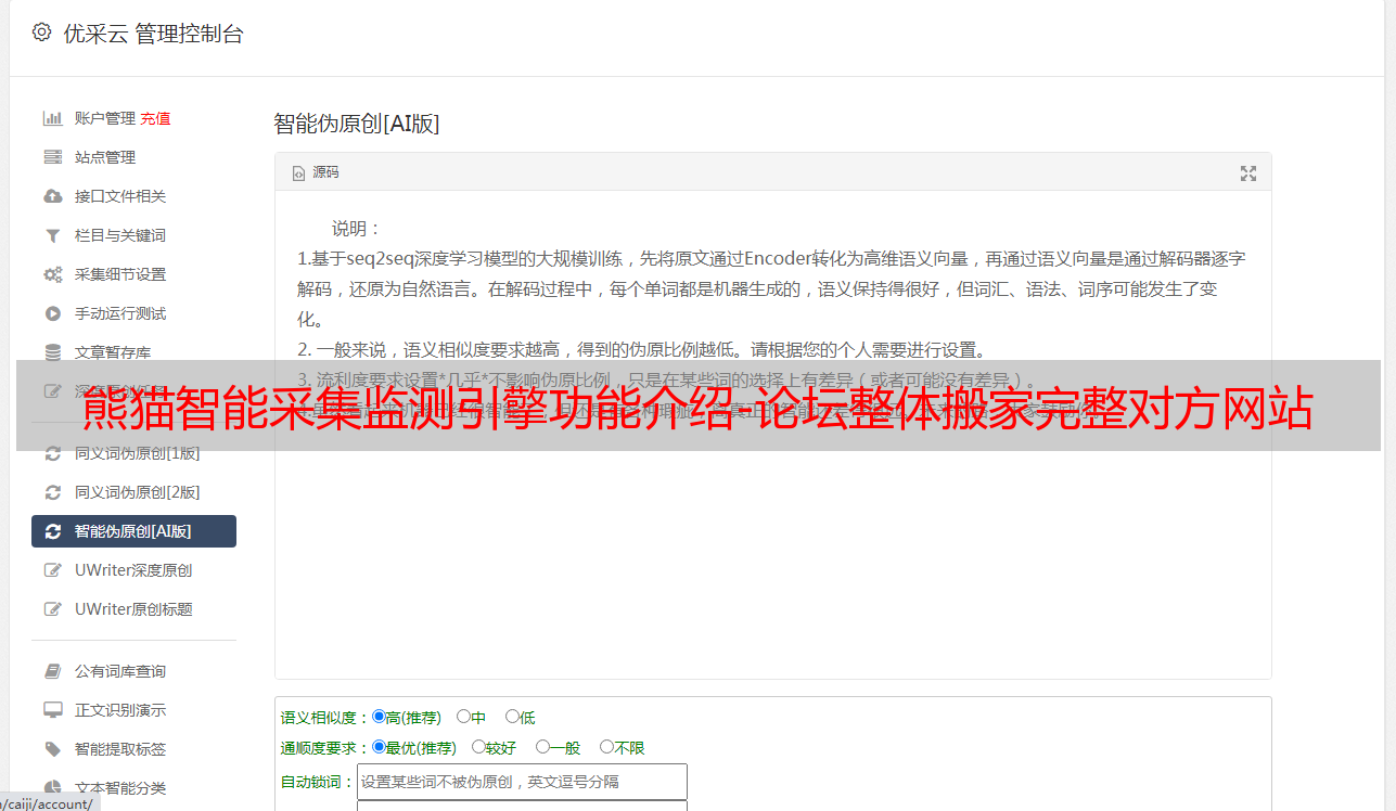 熊猫智能采集监测引擎功能介绍-论坛整体搬家完整对方网站