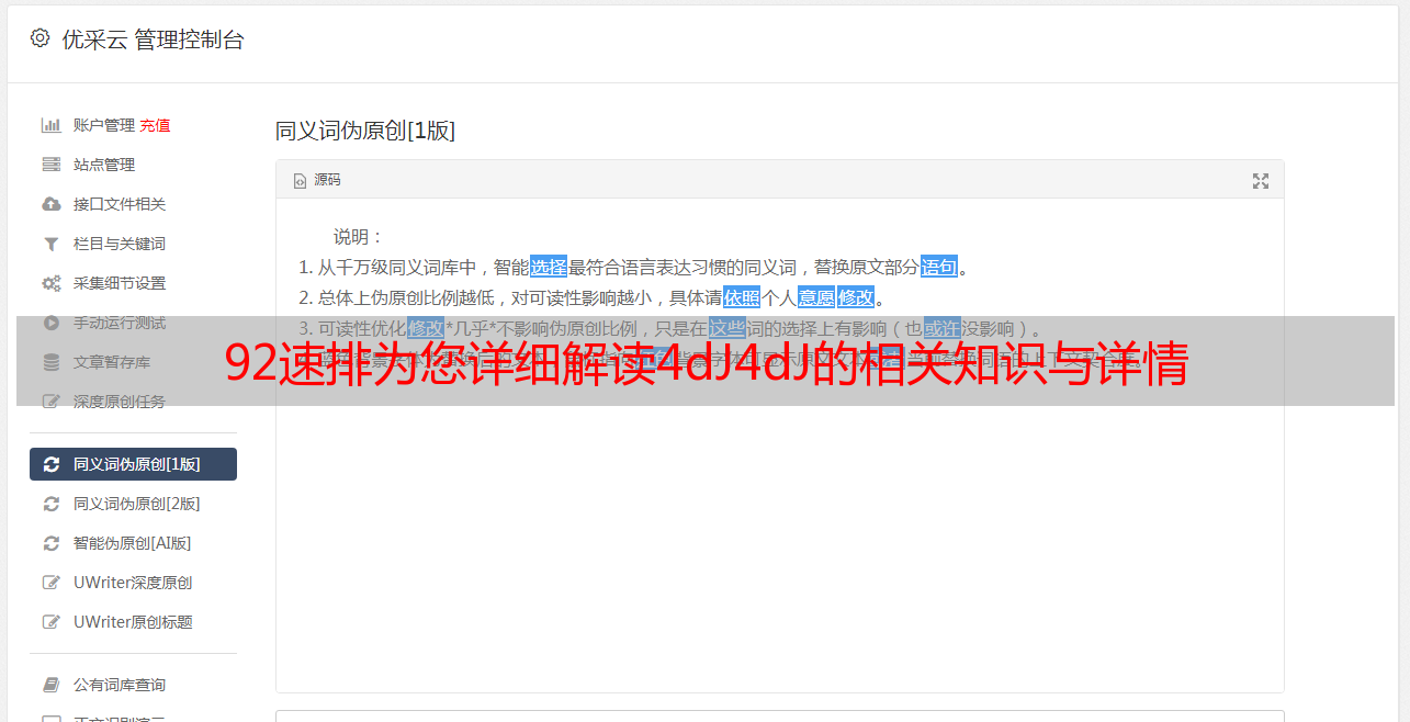 优采云 发布时间: 2021-06-26 23:1692速排为您详细解读4dJ4dJ的相关知识与详情