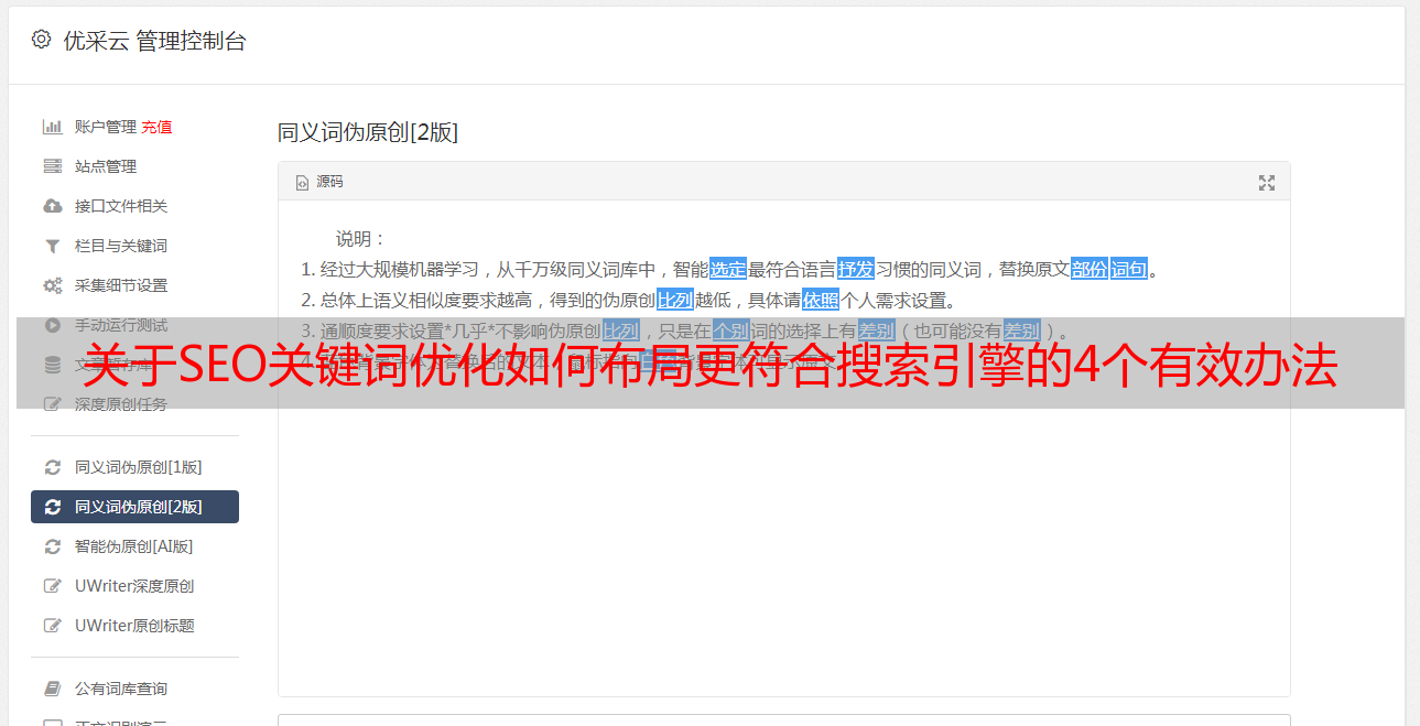 优采云 发布时间: 2021-06-27 07:22关于SEO关键词优化如何布局更符合搜索引擎的4个有效办法