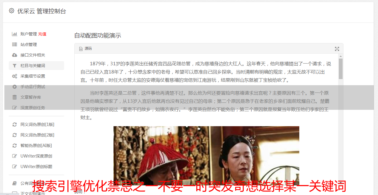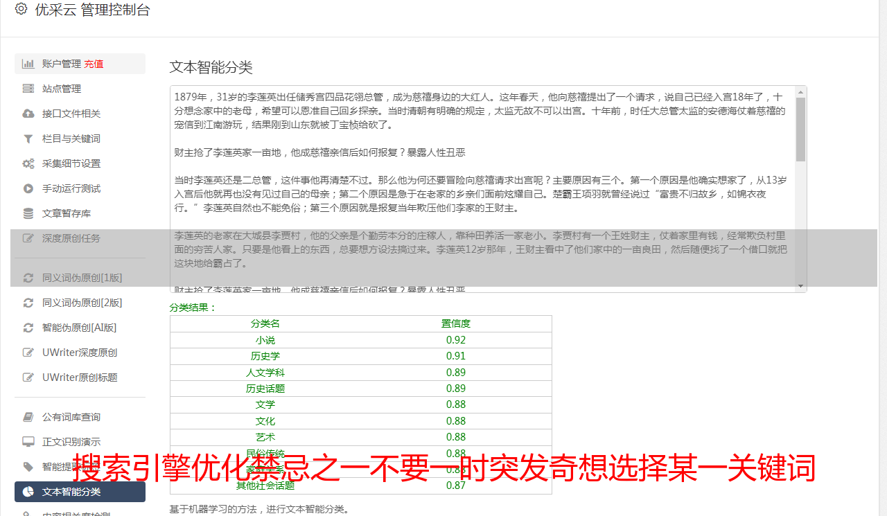 搜索引擎优化的禁忌之一。不要一时兴起把某个关键词选为网站的关键词,考虑到你的网站内容,你应该选择网站优关键词。