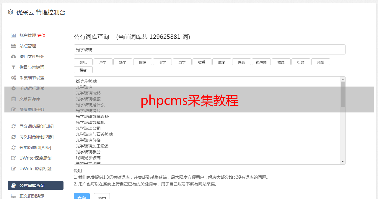 优采云 发布时间: 2020-08-08 20:09Phpcms网站管理系统的最新版本是Phpcms v9. 作为中国主流的CMS系统之一,目前有数以万计的网站正在使用. 那么,让我们看看它自己的采集模块的功能是什么.
