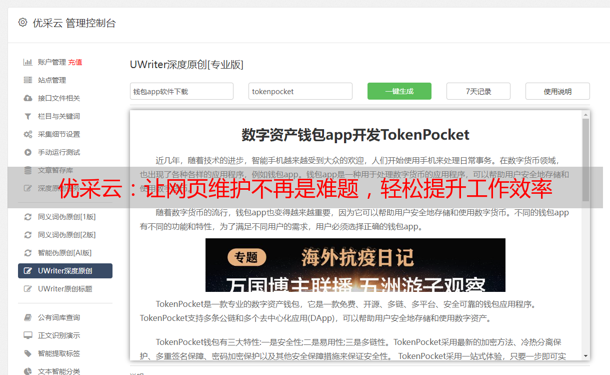 优采云:让网页维护不再是难题,轻松提升工作效率