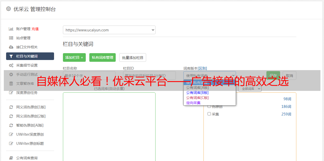 优采云平台提供了快捷简便的收款与结算服务。投放广告完毕后,广告主将在设定时限内完成款项结算;自媒体人可在平台随时查询收款状况,并根据预设方式提取*敏*感*词*。为保障资金安全,请定期查阅收款记录,如有异常情况应立即处理。