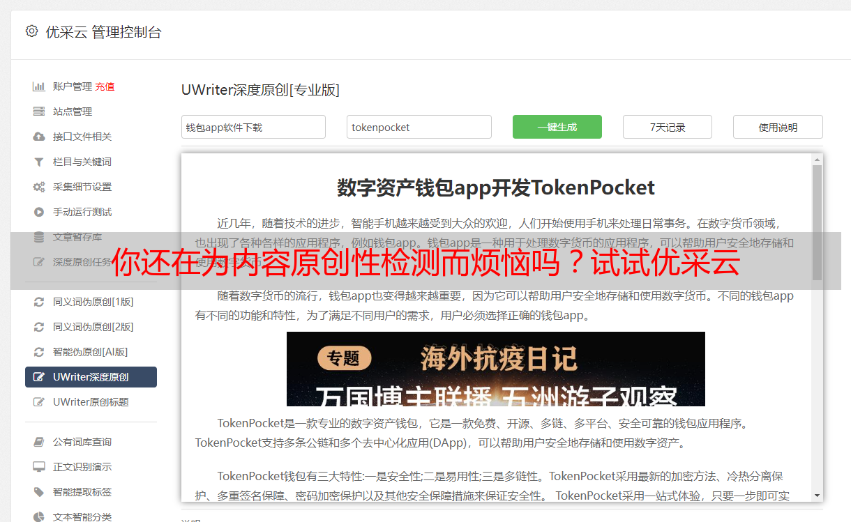 你还在为内容原创性检测而烦恼吗?试试优采云