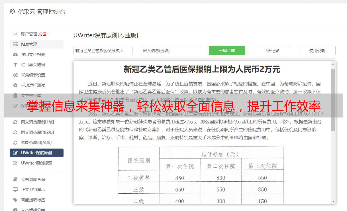 为提升用户体验,优采云应全力提供全面且优质的用户支持及服务体系,该体系应涵盖在线帮助文档、视频教程、常见问题解答等多样化方式,并配以专业的客服团队予以保障。借助上述服务工具,用户得以高效解决使用过程中所遇难题,助力提升工作效能。