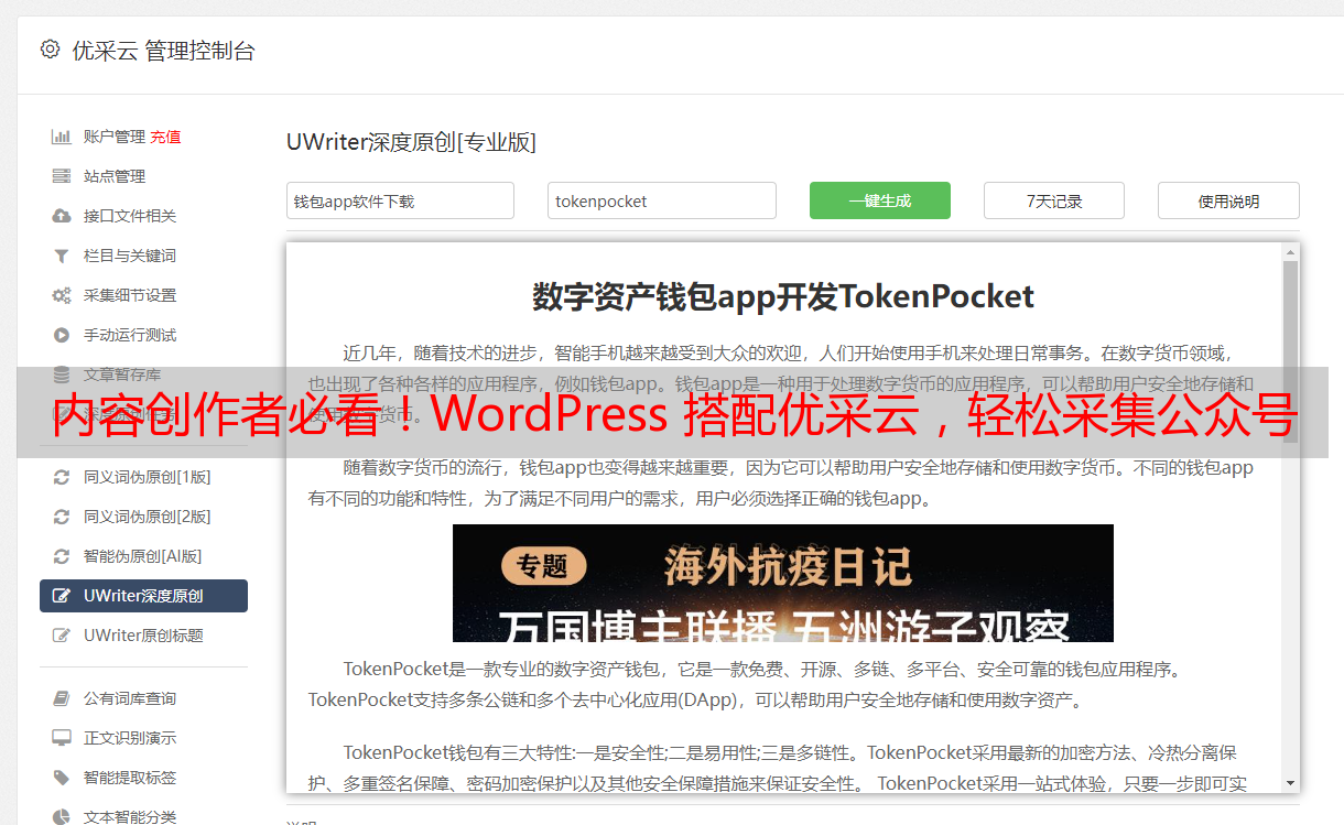 内容创作者必看!WordPress 搭配优采云,轻松采集公众号文章
