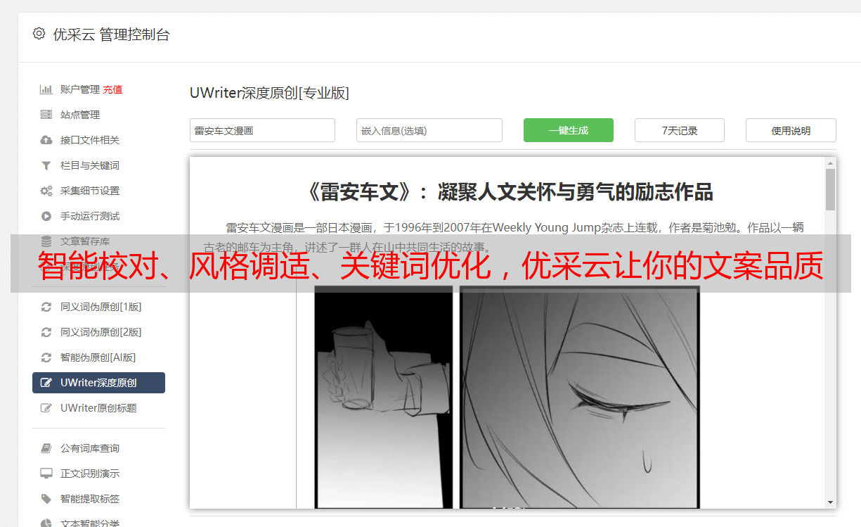 智能校对、风格调适、关键词优化,优采云让你的文案品质一飞冲天