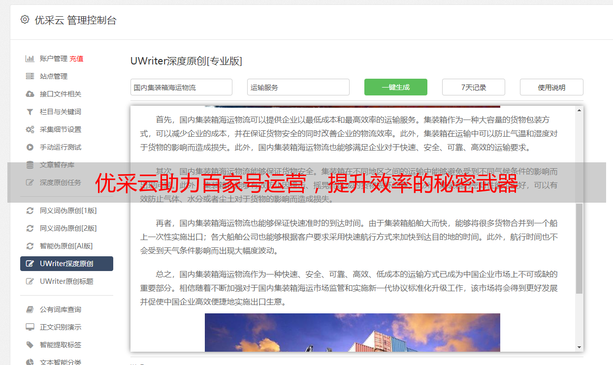 在发布至百家号前,采集的内容需进一步编辑与优化。优采云具备丰富的编辑工具,支持文本、图像、视频等各类素材的精细处理,便于运营人员深度加工,以满足百家号的发布要求。
