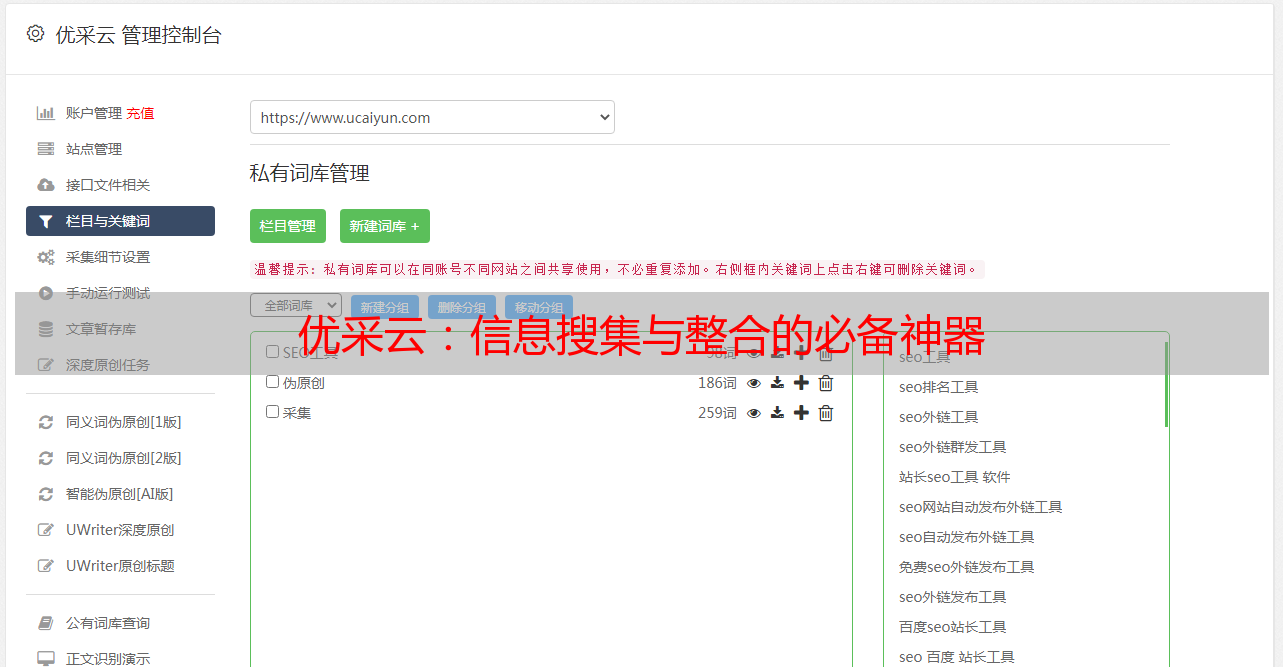 在互联网信息飞速增长的背景下,优采云作为一款卓越的内容采集工具,其优势越发显著。未来,优采云将不断完善产品功能,提高用户满意度,助力用户有效应对信息收集与处理的复杂需求。