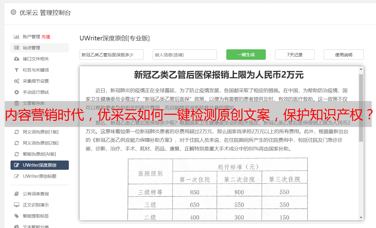 内容营销时代,优采云如何一键检测原创文案,保护知识产权?
