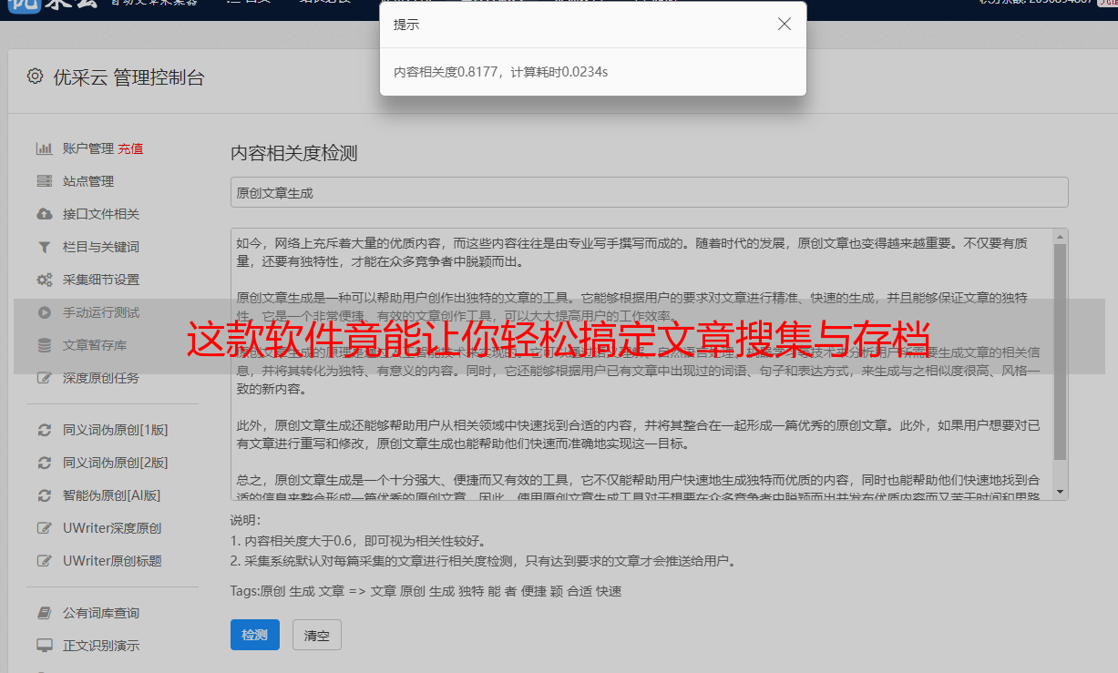 优采云 发布时间: 2024-09-22 22:12在信息时代,文章的搜集与存档是信息管理的关键步骤。作为一款高效的文章搜集软件,优采云助力用户快速整合互联网信息。本文旨在提供优采云的使用指南与经验分享,深入探讨高效文章搜集与保管的策略。