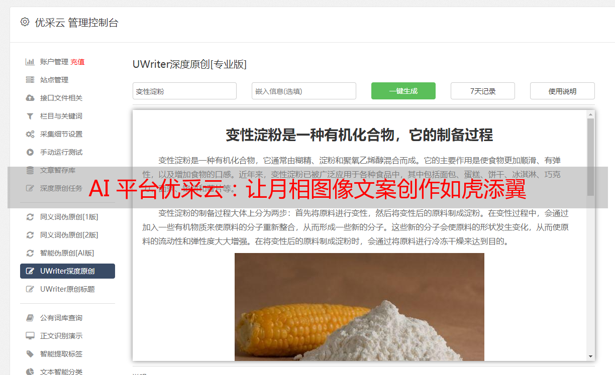 AI 平台优采云:让月相图像文案创作如虎添翼