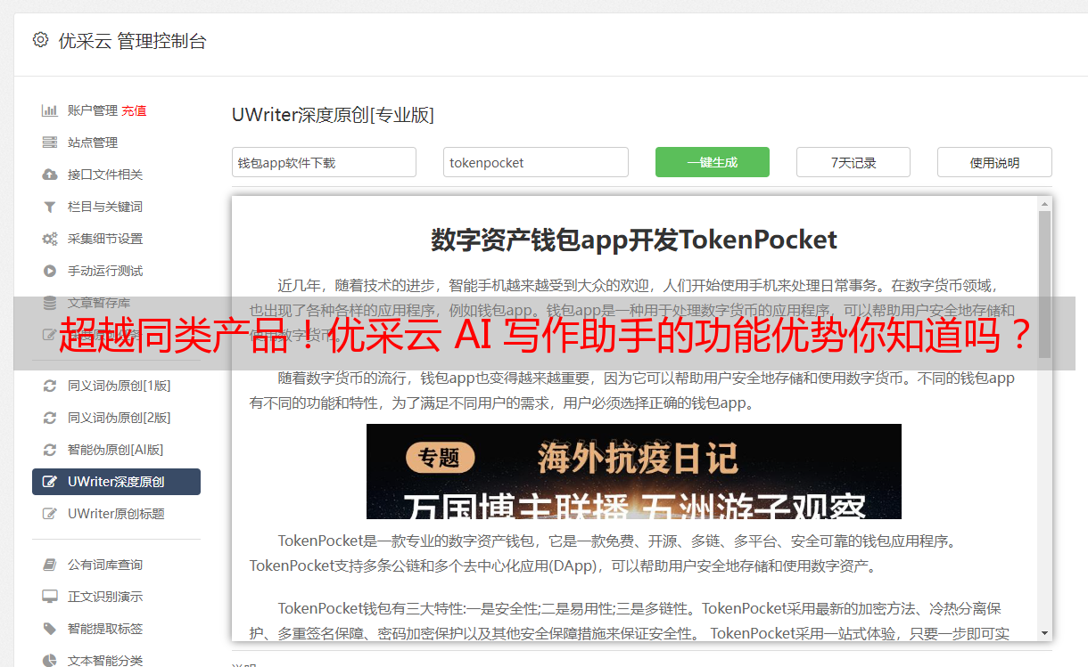 超越同类产品!优采云 AI 写作助手的功能优势你知道吗?