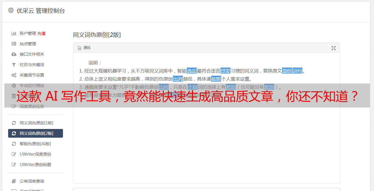 即便优采云能协助产出高水准内容,为确保文章原创,仍需在初稿基础上进行调整及原创性创作。