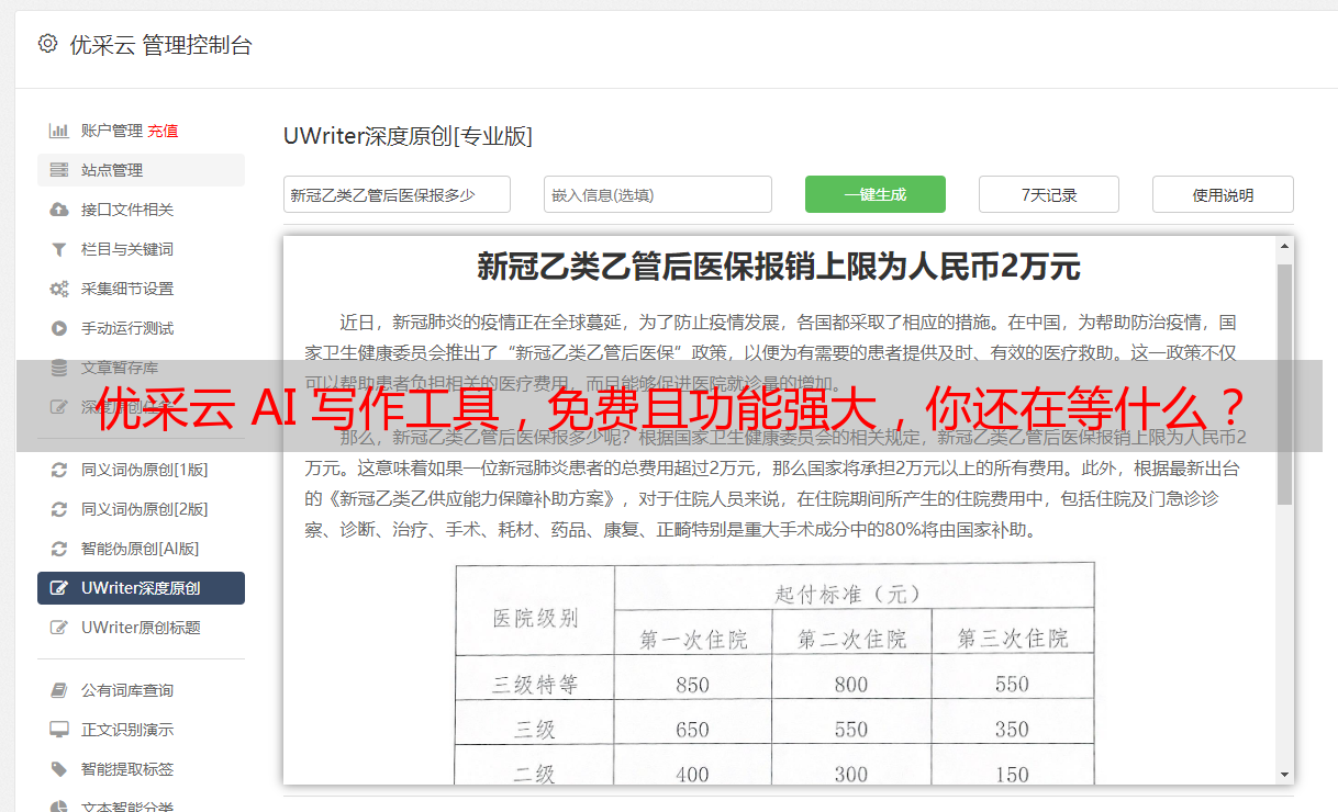 优采云 AI 写作工具,免费且功能强大,你还在等什么?