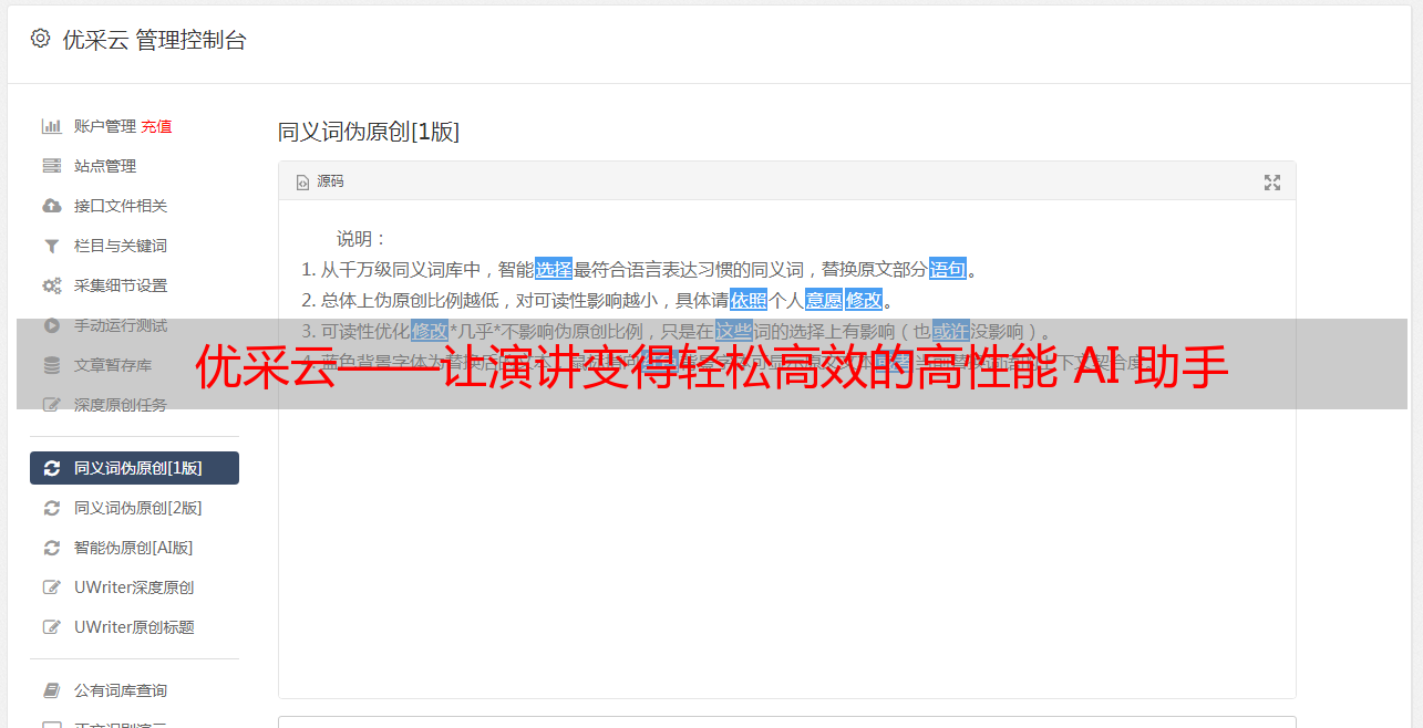 优采云助您高效生成演讲内容。通过分析关键词与要点,系统自动构建优质稿件。此功能不仅节省时间,还能优化思路及表达。