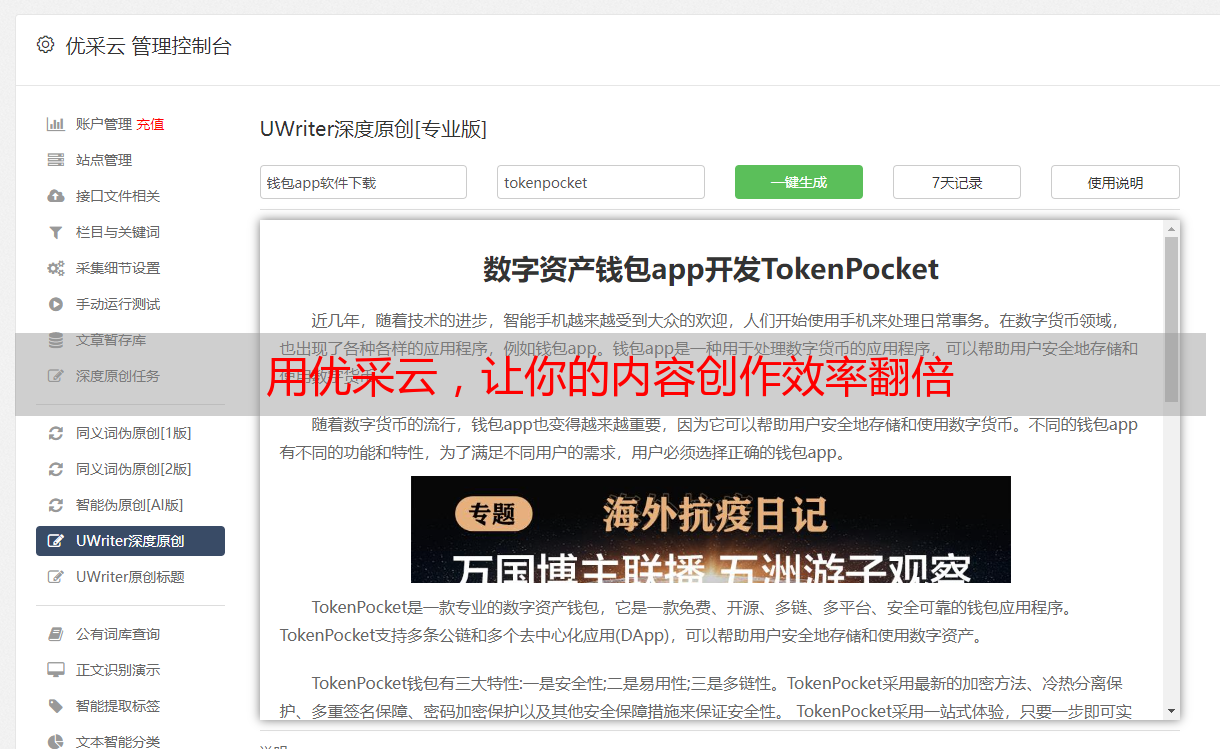伪原创技术涉及运用AI对原文进行语义解析及内容重构,以输出新颖文本。优采云的伪原创解决方案能确保保留关键信息,降低重复率,对SEO和内容更新尤为有益。运用优采云时,需明确伪原创需求,是内容更新或快速创作新内容,这将决定工具的使用方法和策略。