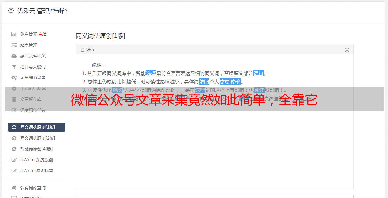 优采云 发布时间: 2024-10-19 01:16微信公众账号文章的采集对众多用户来说极为关键。优采云,作为一款专为这一任务量身打造的辅助工具,将是我们接下来深入探讨的焦点。