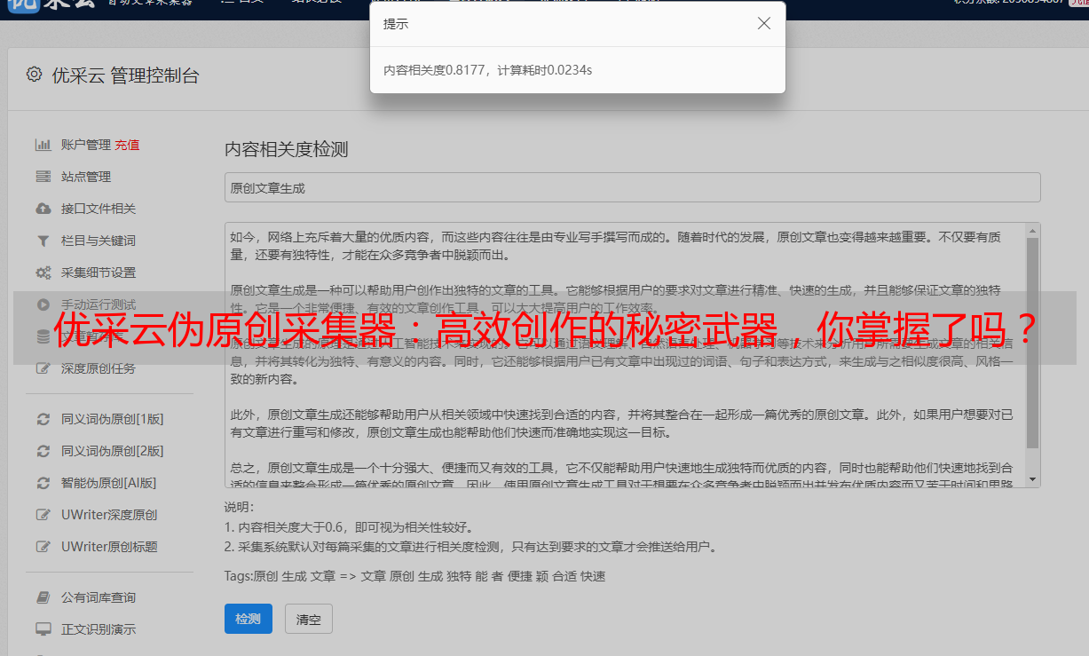 优采云伪原创采集器:高效创作的秘密武器,你掌握了吗?