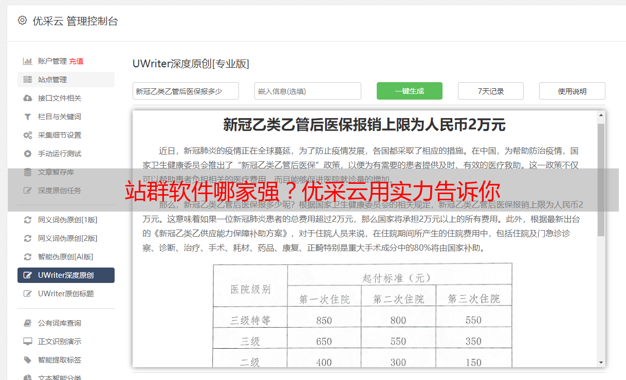 优采云在SEO优化领域表现颇佳。它所生成的内容能够很好地适应搜索引擎的规则,比如合理的关键词布局。这样的优化手段,对站群网站在搜索结果中取得良好排名大有裨益。